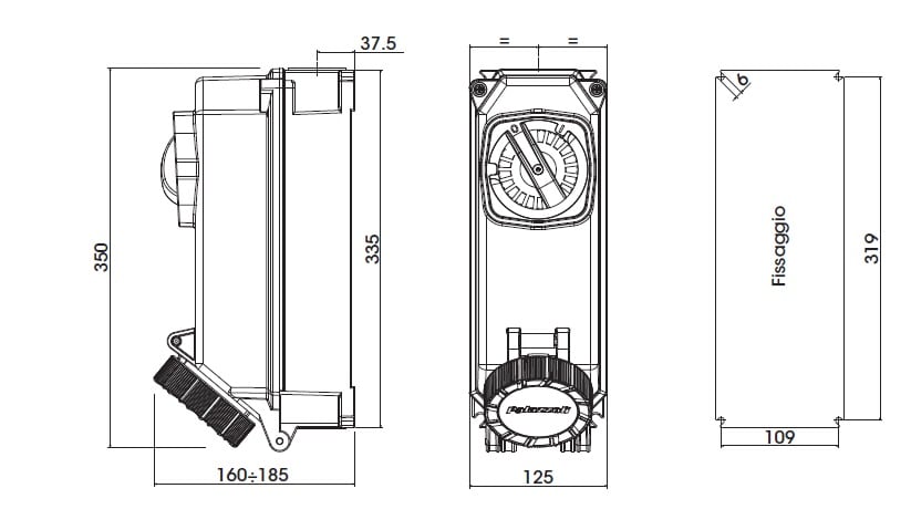TAIS PRESA FISSA INTERBLOCCATA IN TERMOINDURENTE AD ALIMENTAZIONE DIRETTA 32A 2P+T 200-250V 50-60HZ 6H IP67 >IK10