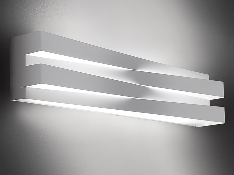 CROSS - Apparecchio di illuminazione per installazione a parete in ambienti interni, con emissione diretta e indiretta. Struttura in lamiera decapata con verniciatura poliacrilica. Fascia di copertura in lamiera decapata con rivestimento in foglia oro. Schermo diffusore in vetro sagomato acidato. LED 20W 2340lm 3000K CRI >80.