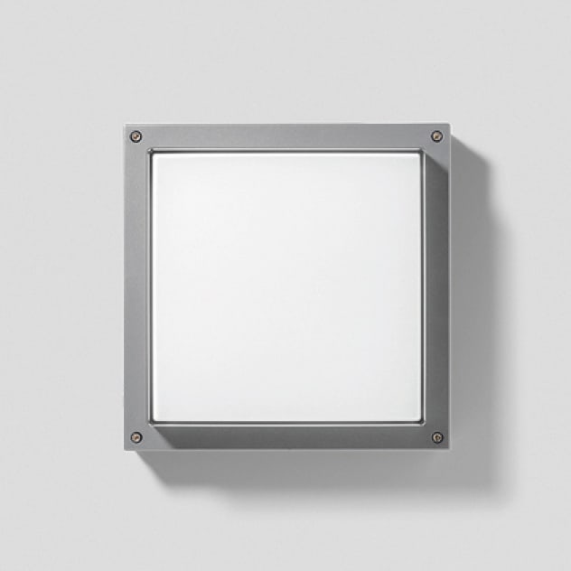 Apparecchio LED da parete e soffitto per interni ed esterni, costituito da: Corpo e anello in alluminio pressofuso verniciato. Diffusore in vetro pressato verniciato internamente. Guarnizione in silicone. Apparecchio predisposto per il collegamento in cascata. Viti di chiusura in acciaio inox. Attacco: LED. Sorgente luminosa: LED. Potenza: 39 W. Colore / RAL: GR-94 / Grigio metallizzato / Goffrato. Classe di isolamento: I. Grado di protezione: IP 65. IK-J-xxIP: IK07 2J xx5. CRI: 80. Kelvin: 4000. Fattoredi potenza: COSφ ≥ 0,9. Ottica: OTTICA SIMMETRICA EXTRA DIFFONDENTE. Flusso della sorgente: 6732 lm. Flusso di apparecchio: 2495 lm. L: L80. B: B10. Lifetime: 36000 h.