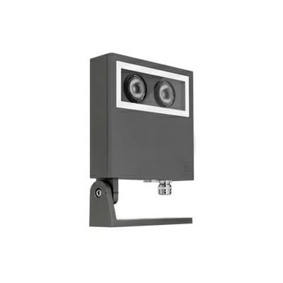 FOCUS+1 ELL - Proiettore LED per interni ed esterni, costituito da: Corpo e anello in alluminio pressofuso verniciato. Staffa di fissaggio, regolabile, in alluminio pressofuso verniciato. Diffusore in vetro piano extrachiaro temperato, serigrafato internamente. Ottica ellittica. LED di alta potenza ad alto flusso luminoso di ultima generazione. Guarnizione in silicone. Viti di chiusura in acciaio inox. Pressacavo antistrappo M16x1.5 per cavi Ø 5 - Ø 10 mm. Disponibile picchetto in tecnopolimero per fissaggio a terra. LED 18W 1680lm 3000K CRI 70 - 15°x40°. Colore: Antracite metallizzato / Goffrato.