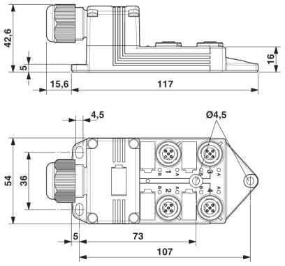 Ausführung der Abgänge für Sensor-/Aktorleitungen - M12