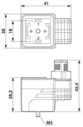 Ventilstecker, 3-polig, Stecker gerade M12 SPEEDCON, A-kodiert, auf Ventilstecker A, mit 1 LED, beschaltet mit Z-Diode