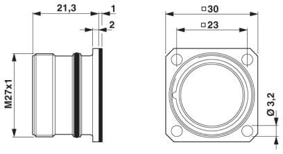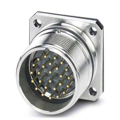 Gerätesteckverbinder, Vorderwand, gerade, Schraubverriegelung, M27, Polzahl: 26, Kontaktart: Stift, Lötanschluss, Flachdichtung, 4x Ø 3,2, geschirmt: ja