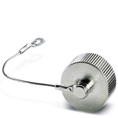 Metallschutzkappe mit Stahlseil für Signalsteckverbinder mit M23-Außengewinde