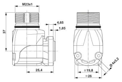 Gerätesteckverbinder, Vorderwand, gewinkelt fest, Schraubverriegelung, M23, Polzahl: 16, Kontaktart: Buchse, Crimpanschluss, O-Ring axial, 4x Ø 3,2, geschirmt: ja, Flanschmaß: 26 mm x 26 mm