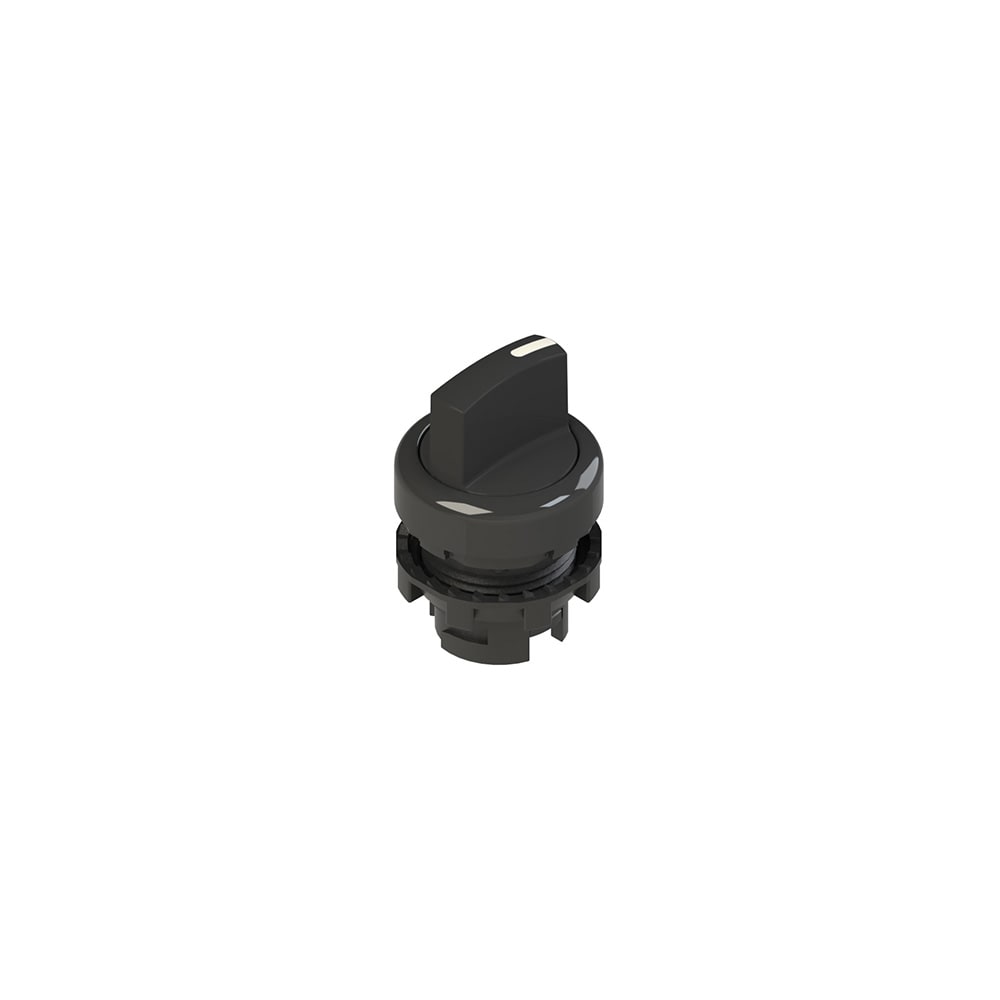 Selettore a leva corta a tre posizioni nero con marcatura, Grado di protezione: IP67 secondo EN 60529 e IP69K secondo ISO 20653, Forma: A leva corta , Funzione: 3 posizioni, Colore: Nero, Ghiera: Nero, Marcatura: Con marcatura.