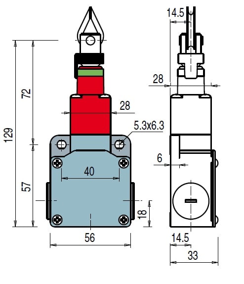 Interruttore di sicurezza a fune senza reset per arresti semplici, Custodia: Custodia metallica, una entrata cavi filettata PG 13,5 (serie FD), Unit? di contatto: 1NO+1NC scatto lento con contatti ravvicinati (B18), Testa: A fune senza reset per arresti semplici, testa longitudinale, Grado di protezione: IP67 secondo EN 60529, Apertura positiva: S?.