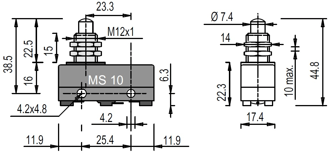PIZZATO ELETTRICA S. - PZZMS 10 MICROINTERRUTTORE A PULSANTE FILETTATO - MS 10