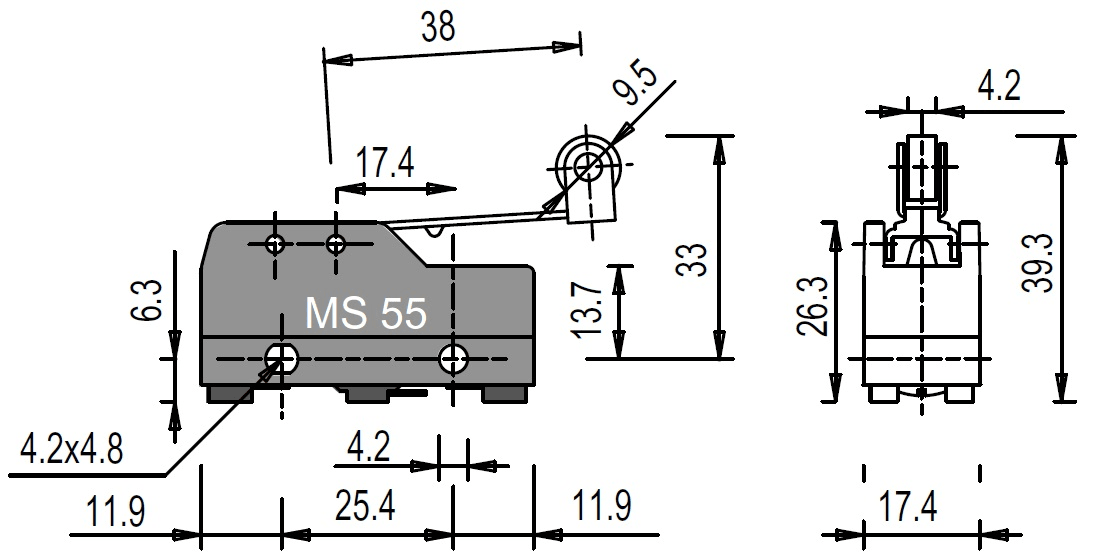 PIZZATO ELETTRICA S. - PZZMS 55 MICROINTERRUTTORE A LEVA CON ROTELLA - MS 55