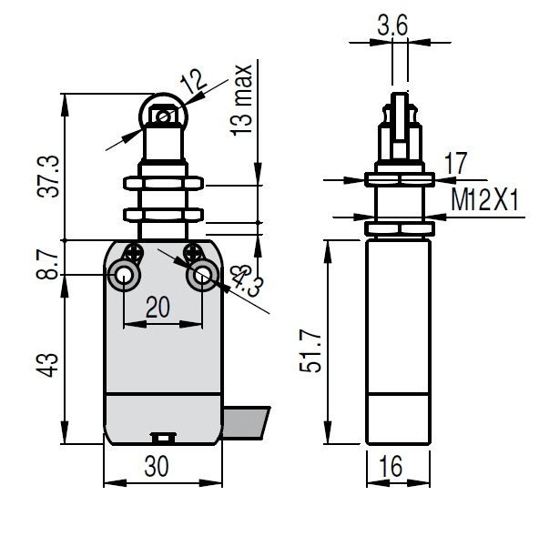 Breite des Sensors - 16 mm