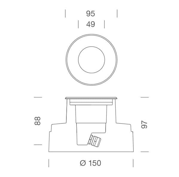 MICRO FULL INOX - 4 LED RGBW - Corpo e anello di chiusura in acciaio Inox AISI 316L. Assenza di viti a vista e fissaggio alla controcassa con sistema a scatto. Grado di protezione IP68 con sistema Full Dry che evita la formazione di condensa all'interno del prodotto. Installazione in controcassa gettata nel cemento con un letto di drenaggio di ghiaia di 20-30 cm. Solamente una connessione IP68 alla rete di alimentazione può garantire la stessa protezione all'apparecchio. Alimentatore: max. 500mA - alimentatore da ordinare separatamente. Apertura di fascio: Largo. Ottica: 44°. LED RGBW 5,8 W.