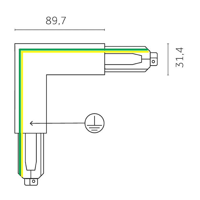 Accessorio per binario 3 Accensioni. Giunto a L. Conduttore di terra esterna. Bianco.