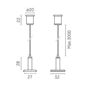 Il set include: guide, cavi in acciaio, rosoni. L=3000 mm