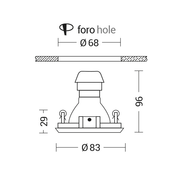 Faretto ad incasso tondo o quadrato, fisso o orien tabile su un unico asse di ?25?, con attacco GU10che consente di montare lampadina LED. Struttura in metallo verniciato, disponibile in sei finiture: bianco, grigio, cromo, nero, nickel opaco e oro lucido. Cassaforma per installazione in muratura da ordinare come accessorio.