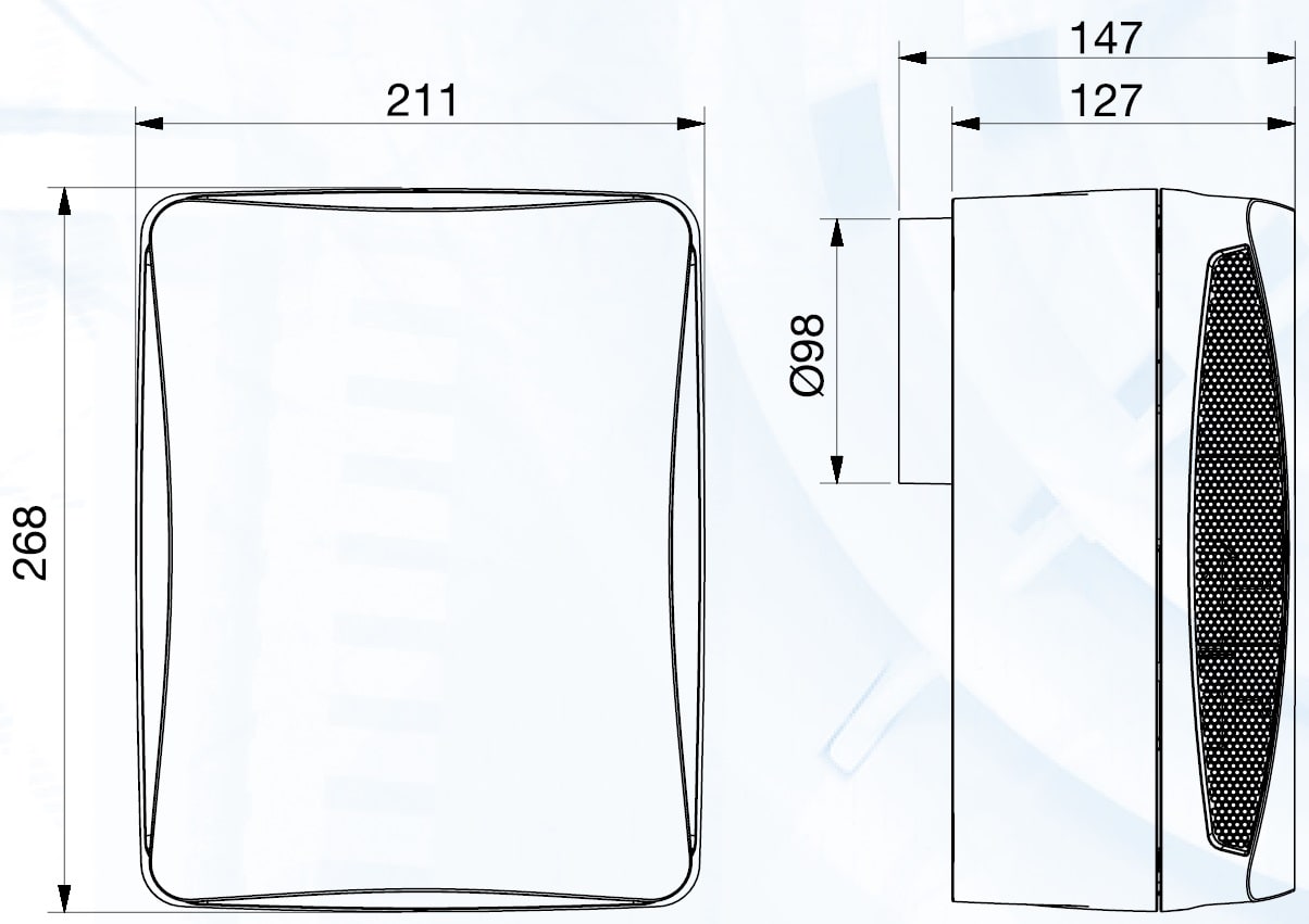 Ventilatori centrifughi con design elegante e moderno per installazione a parete in bagni e toilette. Sono costruiti in materiale plastico di alta qualità, con ventilatore centrifugo a pale avanti e serranda antiritorno incorporata. Motore monofase a doppia velocità, IP44, con protezione termica a riarmo automatico e isolamento in classe II. Temperatura massima di funzionamento 40°C. La gamma si compone di 3 versioni con portata d’aria nominale di 270, 220 e 130 m3/h con diametro foro 100 mm (Ø100 oppure80 mm solo per il modello EBB-100N). Il modelli con temporizzatore possono prolungare il funzionamento per un tempo di 2, 15 o 30 minuti, oppure per un tempo proporzionato all’utilizzo del ventilatore (temporizzazione automatica); nel periodo temporizzato il funzionamento del ventilatore sempre alla bassa velocità. I modelli HT, oltre al temporizzatore (regolabile da 1 a 30 minuti) hanno un igrostato che al superamento del valore di umidità relativa impostata (compreso tra il 60% e il 90%) fa passare automaticamente il funzionamento degli apparecchi dalla alta alla bassa velocità. Versione “S”: modello standard Versione “T”: modello con temporizzatore Versione “HT”: modello con igrostato e temporizzatore