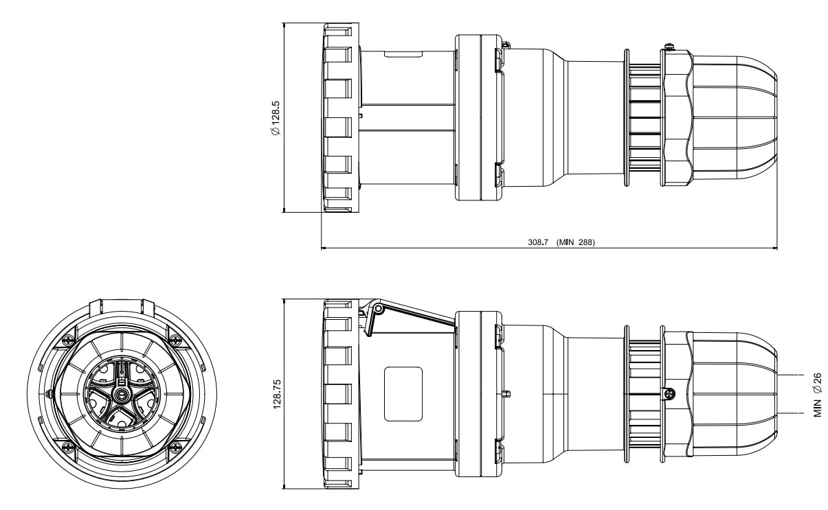 125A 3P+N+T 11h 440-460V 60Hz Morsetti a mantello
