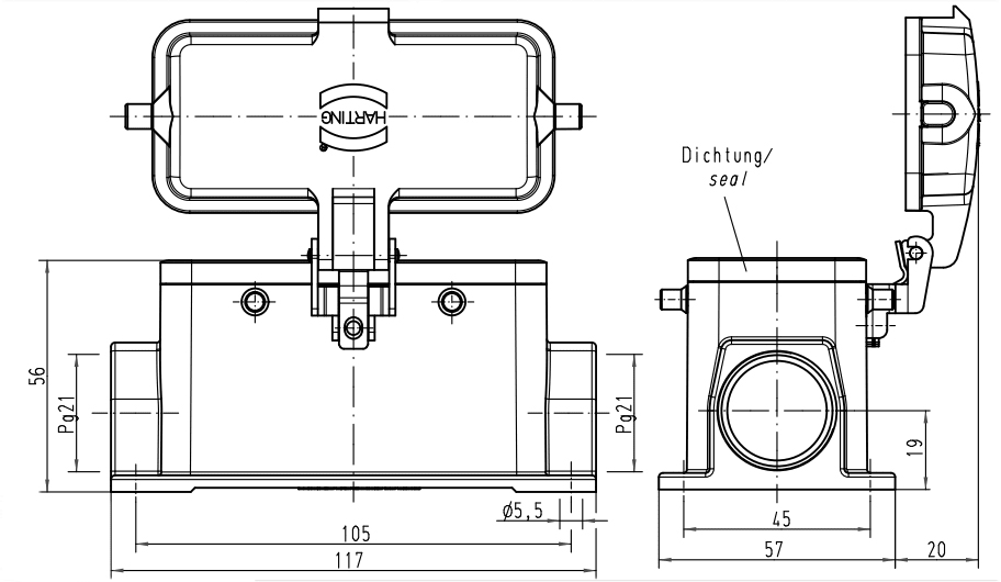 CUSTODIA FISSA+COPERCHIO 2 LEVE 16P PANNELLO 2 USCITE PG21