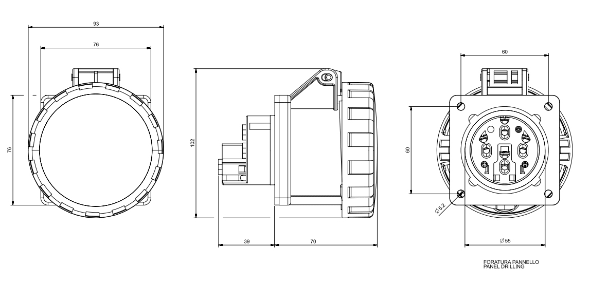 30A 3P 4W 9h 3Ø250V 75X75MM Morsetti a vite