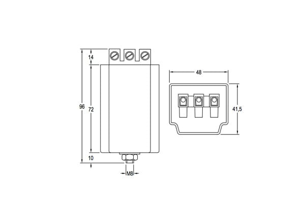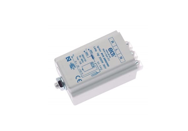 Accenditore per sodio ad alta pressione e ioduri metallici. Accenditore indipendente. Sistema sovrapposto. Uso universale fino a 12 A. Involucro autoestinguente isolante con gambo di fissaggio M-8. Morsettiera in poliammide 0,75 ÷ 2,5 mm2. Incapsulato inresina poliuretanica.