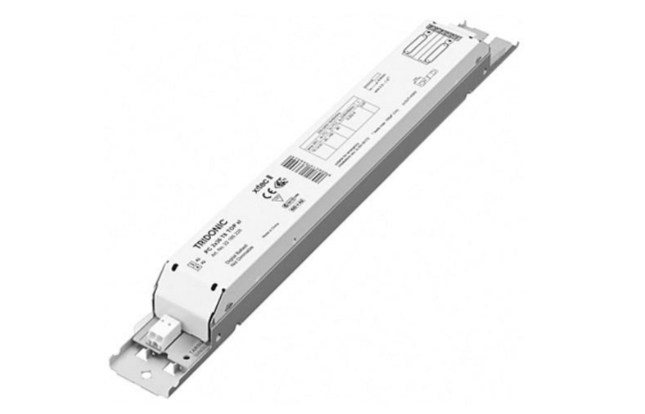 Classe di efficienza energetica CELMA A2. Durata vita nominale di max. 50.000 h (con ta 50 °C con un tasso di mal funzionamento ≤ 0,2 % per 1.000 h). Ampia gamma di temperature (per i valori si veda tabella). Flusso luminoso costante a prescindere dalle fluttuazioni della corrente di rete. Preriscaldamento lampade per min. 30.000 accensioni senza sostituzione di lampade. Predisposto per THD < 10 %. Per apparecchi illuminanti in classe d'isolamento I e II. Riaccensione automatica a seguito alle sostituzione delle lampade difettose. Spegnimento di sicurezza di lampade difettose e usurate. Morsetti ad innesto per un rapido cablaggio automatico o manuale. Idoneo per i sistemi d'illuminazione di emergenza che ottemperano alla EN 50172 . PC 1x58 T8 TOP sl 220 – 240 V. Dimensioni L x l x H: 230 x 30 x 28 mm.