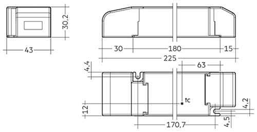 LCA 60W 24V one4all SC PRE. Driver LED a tensione costante 24 V, dimmerabile, per strisce LED flessibili a tensione costante.Interfaccia one4all e ready2mains per diverse possibilità di dimming. Gamma di regolazione da 1 a 100 % .Non serve alcun dimmeresterno. Idoneo per unità illuminazione d'emergenza conf. EN 50172. Durata nominale di max. 50.000 h. 5 anni di garanzia. Applicazioni tipiche: Illuminazione di modanature, accenti su facciate e illuminazione indiretta di soffitti. Dettagli tecnici: 24 V, 60 W. Costruzione compatta (225 x 43 x 30,2 mm) con pressacavi. Sezione ridotta. Morsetti a innesto per semplificare il cablaggio. 1 canale d'uscita (+/–). Interfacce: one4all (DALI DT 6, DSI, switchDIM, corridorFUNCTION). ready2mains (configurazione e dimming via rete). Morsetti: innesti 45°. Soluzione in sistema: Tridonic LLE-FLEX ADV 600, 1.200, 1.800 lm/m. Tridonic LLE-FLEX EXC 600, 1.200, 1.800, 2.500 lm/m. In abbinamento ad accessori Flex Wire per spina PCB. H 225 x 43 x 30,2 mm.