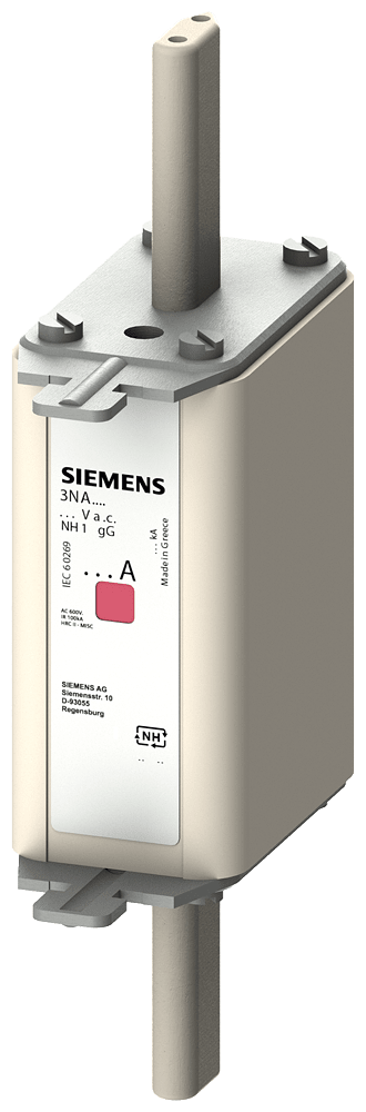cartuccia fusibile NH, NH1, In: 160 A, gG, Un AC: 500 V, Un DC: 440 V, indicatore combinato, attacchi sotto tensione Cartuccia fusibile NH SENTRON 3NA7 per la protezione selettiva dei cavi e dellimpianto. Il sistema di fusibili NH offre una protezione efficace per le persone, gli apparecchi e gli impianti grazie alla disinserzione sicura in caso di sovraccarico e cortocircuito. Segnalazioni combinate rivelano lintervento del fusibile mediante un chiaro cambio di colore da rosso a bianco. Le cartucce fusibili NH sono disponibili da 2 A a 1250 A e nelle grandezze costruttive 000, 00, 0, 1, 2, 3, 4 e 4a. Le varianti con funzione di comunicazione e di misura nella grandezza costruttiva 2 da 80 A fino a 315 A. Dispositivi di protezione SENTRON - Una scelta sicura. Ora ancora più intelligenti.
