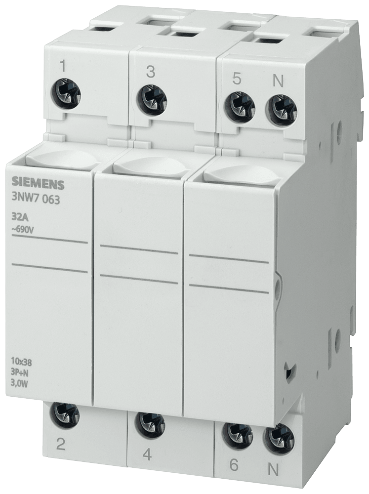 SIEMENS - SIE3NW7063 BASE SEZ.X FUS. CILINDR.10X38 3P+N 32A 3 - 3NW7063