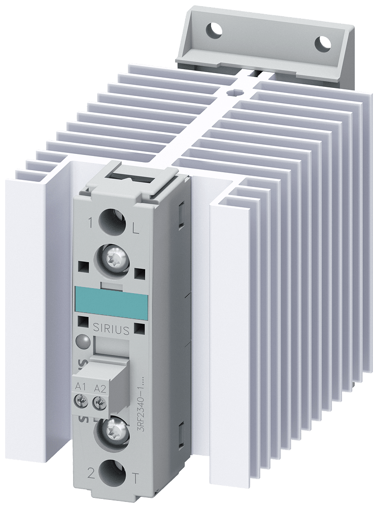 contattore statico monofase 3RF2 AC 51 / 40 A / 40 °C AC 48-460 V / 110-230 V morsetto a vite contattore statico SIRIUS 3RF23 per il comando di carichi ohmici/induttivi, ad es. di elementi riscaldanti o di valvole in un impianto di imbottigliamento. La commutazione silenziosa e senza usura degli apparecchi li rende ideali per limpiego in ambienti sensibili al rumore (uffici, ospedali). Essi sono estremamente affidabili anche in caso di frequenze di commutazione elevate. Poiché il dissipatore di calore è già integrato, è possibile linstallazione diretta nel quadro elettrico. La forma costruttiva compatta fa risparmiare spazio sulla guida DIN. I contattori statici possono essere inoltre ampliati mediante moduli funzionali standardizzati 3RF29 per molteplici applicazioni con un semplice montaggio a scatto. Gli apparecchi hanno omologazioni internazionali (ad es. IEC e UL/CSA). I contattori statici sono disponibili come apparecchi monofase o trifase. Essi sono fornibili per diverse potenze e tensioni nominali di impiego. Progettati per comando in AC o DC, essi sono disponibili con morsetti a vite, a molla o per capicorda ad occhiello. Come accessori sono disponibili oltre ai moduli funzionali 3RF29 anche spine di controllo e calotte coprimorsetti. Semplice, efficiente, sempre attuale - il sistema modulare SIRIUS.
