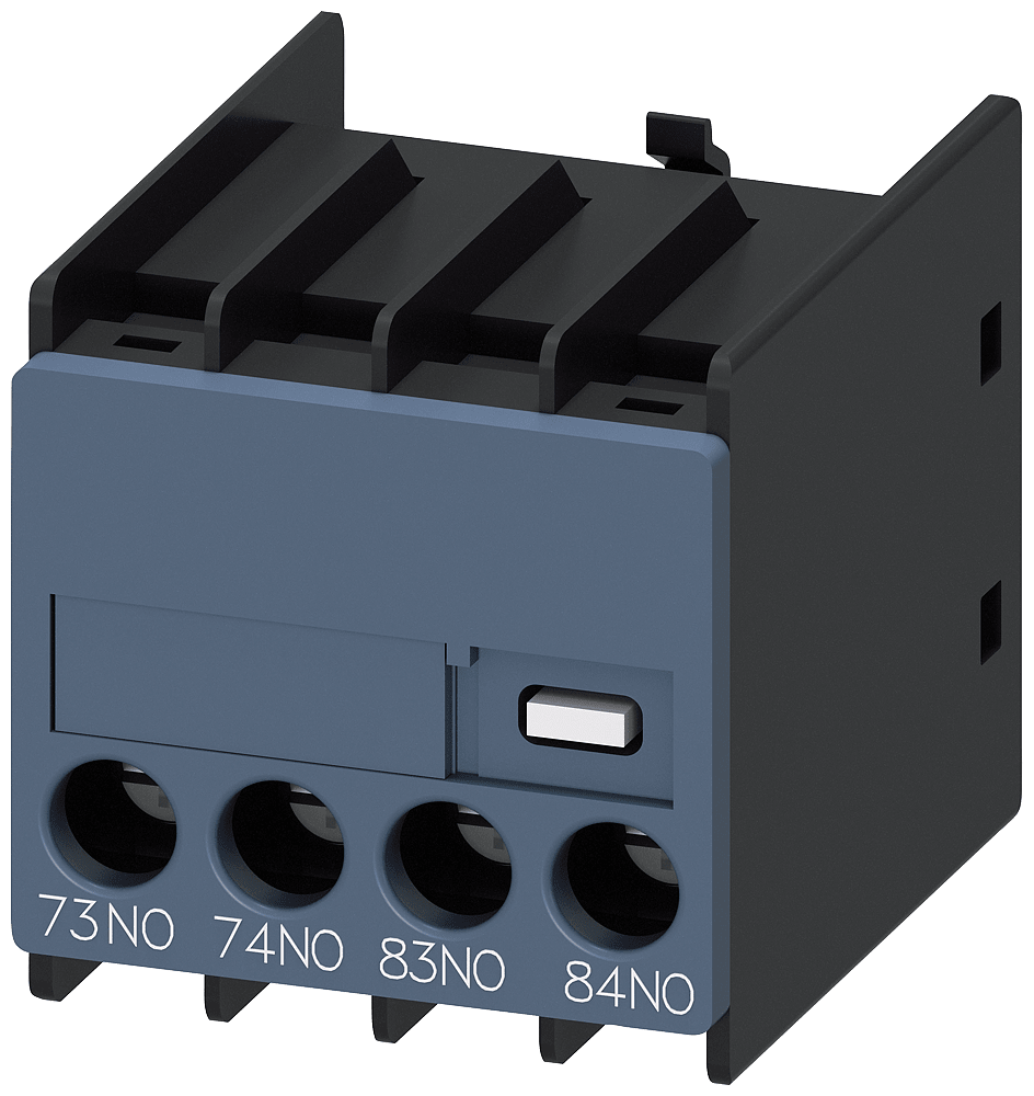 blocchetto di contatti ausiliari, sul lato frontale, 2 NO, 73/74, 83/84, via di corrente: 1 NO, 1 NO, ingresso cavi dal basso, morsetti a vite, per contattori 3RT2 e contattori ausiliari 3RH2 contatto ausiliario SIRIUS 3RH29 per lampliamento dei contattiausiliari nel circuito di comando. I blocchetti di contatti ausiliari frontali 3RH29 possono essere montati senza attrezzi indipendentemente dalla grandezza costruttiva sui contattori 3RT2 e sui contattori ausiliari 3RH2. I blocchetti di contatti ausiliari 3RH19/3RH29 sono fornibili come varianti per il montaggio frontale o laterale, con fino a quattro contatti NO con commutazione istantanea o fino a due contatti NO e NC anticipati. I blocchetti di contatti ausiliari possono essere in esecuzione con elementi di contatto a guida forzata in contattori ausiliari 3RH o anche come contatti speculari in contattori di potenza 3RT. Essi sono sempre fornibili con morsetti a vite e morsetti a molla. Semplice, efficiente, sempre attuale - il sistema modulare SIRIUS.
