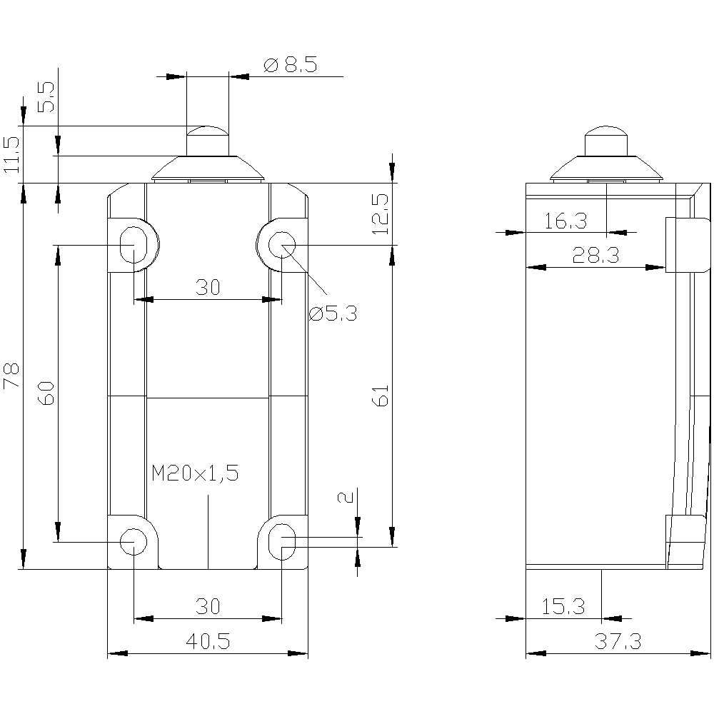 Höhe des Sensors - 37.3 mm