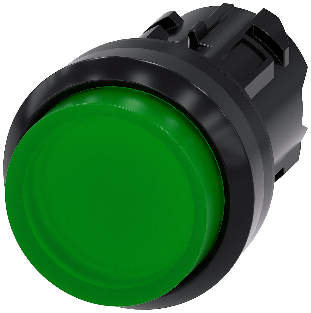pulsante luminoso, 22 mm, rotondo, in plastica, verde, bottone, sporgente ad impulso Pulsanti luminosi SIRIUS ACT per la commutazione e il comando di utilizzatori elettrici. Siemens offre, sotto il nome commerciale SIRIUS ACT, un portfolio esclusivo di dispositivi di comando e segnalazione con omologazioni di prodotto per il mercato mondiale in tre moderne serie di design in robusto metallo puro e plastica pregiata.Linnovativo concetto di innesto a scatto semplifica talmente il montaggio che per eseguirlo basta una sola mano e non servono attrezzi speciali. Per i fori di montaggio sono sufficienti semplici fori non scanalati, essendo già integrata una protezione antirotazione al 100 %.Grazie al grado di protezione elevato i robusti apparecchi sono adattiallimpiego industriale e in ambiente esterno. È persino possibile la pulizia con getto ad alta pressione. Né polvere, né oli, né liscivia possono comprometterne il funzionamento affidabile.Oltre che con il cablaggio standard, gli apparecchi possono essere collegati al controllore anche tramite PROFINET, AS-Interface oppure IO-Link. Potete così ridurre il vostro onere di cablaggio, minimizzare le fonti di errore e ottenere maggiore flessibilità.Il configuratore online grafico supporta in modo confortevolela scelta e lordinazione di singoli apparecchi, pulsantiere e iscrizioni. È disponibile una documentazione completa (ad es. manuale, dati 3D, schema di collegamento). Esecuzioni fornibili: più colori, luminoso/non luminoso, con/senza iscrizione, comando permanente/ad impulso, diverse altezze di bottone e ghiera. Avvertenza: Apparecchio singolo, supporti e moduli devono essere ordinati separatamente. SIRIUS ACT - Performance in Action nel comando e nella segnalazione. Semplici da montare, altamente performanti, semplicemente perfetti.