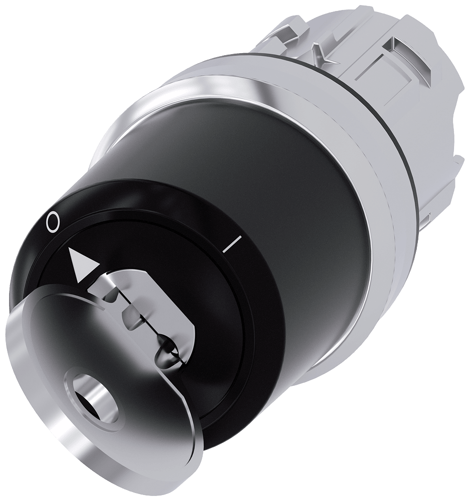 selettore a chiave SIEMENS, B, 22 mm, rotondo, in metallo, lucido, numero serratura E7 (VW), senza chiave, 2 posizioni di commutazione O-I, con blocco, angolo di comando 90°, 10:30h/13:30h, estrazione chiave O Selettore a chiave SIRIUS ACT per elevati requisiti di sicurezza dellaccesso. Siemens offre, sotto il nome commerciale SIRIUS ACT, un portfolio esclusivo di dispositivi di comando e segnalazione con omologazioni di prodotto per il mercato mondiale in tre moderne serie di design in robusto metallo puro e plastica pregiata.Linnovativo concetto di innesto a scatto semplifica talmente il montaggio che per eseguirlo basta una sola mano e non servono attrezzi speciali. Per i fori di montaggio sono sufficienti semplici fori non scanalati, essendo già integrata una protezione antirotazione al 100 %.Grazie al grado di protezione elevato i robusti apparecchi sono adatti allimpiego industriale e in ambiente esterno. È persino possibile la pulizia con getto ad alta pressione. Né polvere, né oli, né liscivia possono comprometterne il funzionamento affidabile.Oltre che con il cablaggio standard, gli apparecchi possono essere collegati al controllore anche tramite PROFINET, AS-Interface oppure IO-Link. Potete cosìridurre il vostro onere di cablaggio, minimizzare le fonti di errore e ottenere maggiore flessibilità.Il configuratore online grafico supporta in modo confortevole la scelta e lordinazione di singoli apparecchi, pulsantiere e iscrizioni. È disponibile una documentazione completa (ad es. manuale, dati 3D,schema di collegamento). Esecuzioni fornibili: diversi sistemi di chiusura (Siemens, C; Siemens, B; RONIS; OMR), 2/3 posizioni di commutazione, comando permanente/ad impulso, diverse posizioni di estrazione chiave. Avvertenza: Apparecchio singolo, supporti e moduli devono essere ordinati separatamente. SIRIUS ACT - Performance in Action nel comando e nella segnalazione. Semplici da montare, altamente performanti, semplicemente perfetti.