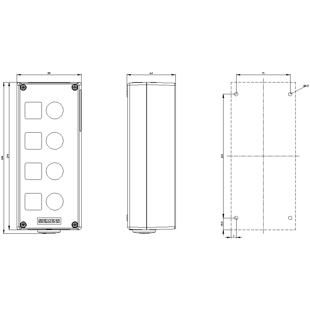 SIEMENS - SIE3SU18540AA000AB1 PULSANTIERA VUOTA GRIGIA 4 FORI - 3SU18540AA000AB1