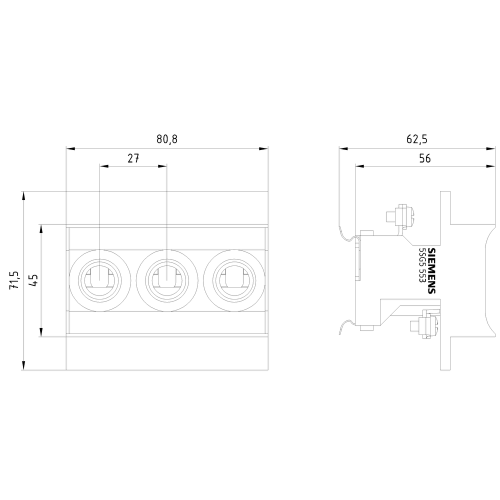 SIEMENS - SIE5SG5553 BASE NEOZED SC. D01 3P 16A + COP. P=70MM - 5SG5553