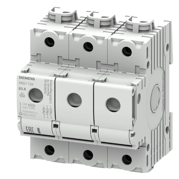 MINIZED, sezionatore sottocarico con fusibile, D02, a 3 poli, In: 63 , Un AC: 400 V senza inserto senza cartuccia fusibile SENTRON 5SG7 . Dispositivi di protezione SENTRON - Una scelta sicura.