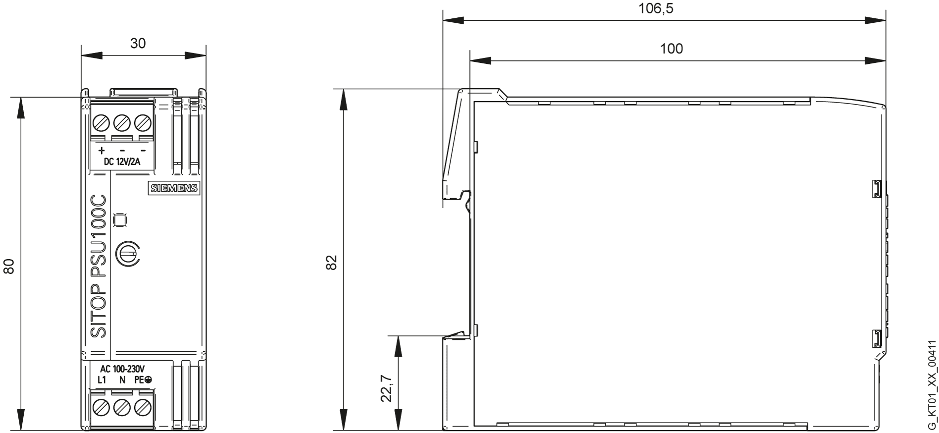 SITOP PSU100C 12 V/2 A alimentatore stabilizzato ingresso: AC 100...230V (DC 110...300V) uscita: DC 12 V/2 A I SITOP compact monofase sono alimentatori stretti e salvaspazio per la fascia di potenza bassa. Sono indicati per applicazioni decentrate in cassette di comando o in piccoli quadri elettrici. Si caratterizzano per la bassa potenza dissipata in tutto il campo di carico. Anche nel funzionamento a vuoto le perdite sono estremamente basse, per cui questi alimentatori sono predestinati allalimentazione efficiente di macchine e impianti che si trovano spesso in stand-by. Gli alimentatori da rete switching hanno un ingresso wide-range per reti in corrente alternata e continua nonché morsetti ad innesto che consentono il semplice collegamento elettrico. Lampio campo di temperatura e le numerose certificazioni offrono possibilità dimpiego universali. Indipendentemente dal settore o dallesigenza, Siemens offre alimentatori affidabili ed efficienti per ogni impianto.