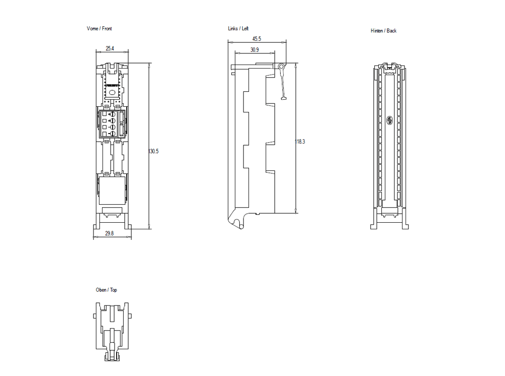 modulo connettore frontale con 1 x 16 poli connessione IDC per (digitali) unità di uscite digitali 2 A dellS7-1500, alimentazione di potenziale tramite morsetto a vite Il modulo connettore frontale per SIMATIC S7-1500 con morsetti a vite per lalimentazione di potenziale, per il collegamento di cavo a 16 poli è un connettore frontale modificato per il collegamento ad una unità di uscita digitale da 2 A. Questo viene innestato sullunità da cablare al posto del connettore frontale. Qui viene innestato il cavo di collegamento e quindi collegato con il modulo di connessione. Questo modulo connettore frontale modificato è parte integrante del collegamento completamente modulare di SIMATIC TOP connect per il cablaggio di sistema più rapido e più sicuro. Oltre ad un ridotto onere di cablaggio è possibile una riduzione significativa delle fonti di errori. Gli attuatori della periferia vengono addotti ai moduli di connessione di SIMATIC TOP connect e da questi, tramite cavo di collegamento e modulo connettore frontale, collegati con il SIMATIC S7-1500.