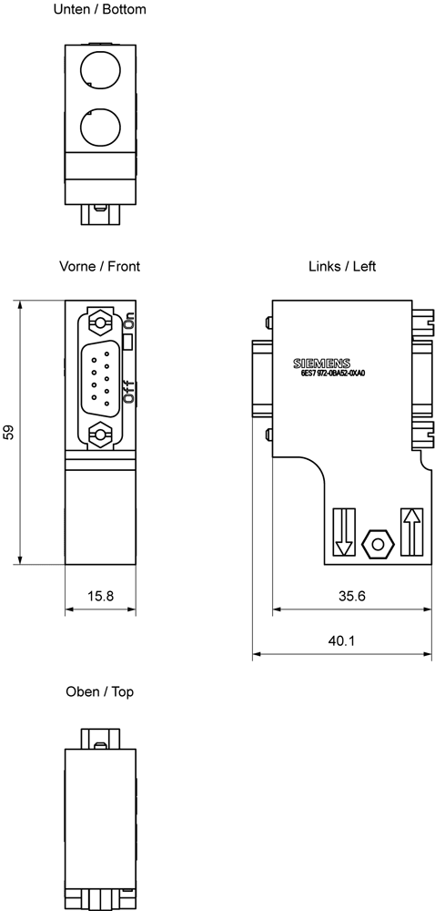 SIEMENS - SIE6ES79720BA520XA0 PB CONNECTOR, 90 DEGREE, W/O PG SOCKET - 6ES79720BA520XA0