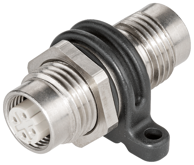 IE M12 Panel Feedthrough PRO condotto passacavi per quadro elettrico per il passaggio da M12 (D-coded) tecnica di collegamento (IP65) a M12 (D-coded) tecnica di collegamento (IP65); 1 confezione=5 pezzi. SIMATIC NET IE M12 Panel Feedthrough PRO IE Panel Feedthrough PRO, condotto passacavi per quadro elettrico per laccoppiamento di connettori M12