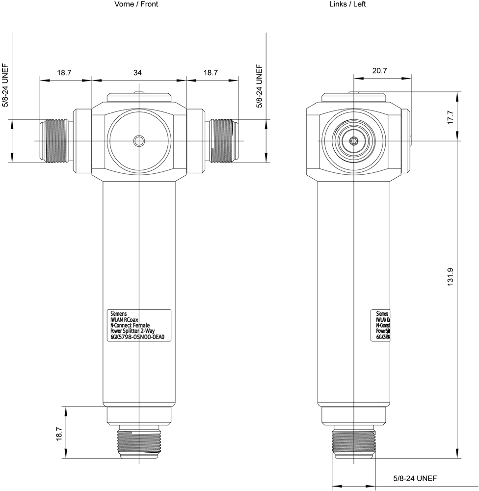 N-Connect femmina Power Splitter 2x; elemento 2,4 e 5 GHz a Y. SIMATIC NETIWLAN Power Splitter N-Connect FemaleIWLAN RCoax N-Connect female Power Splitter 2x, elemento a Y 2,4 e 5 GHz