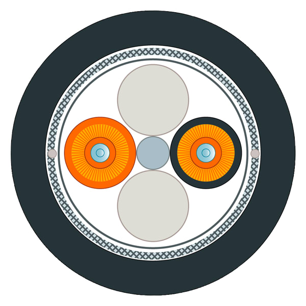 FO Ground Cable 50/125, confezionato 2x2 connettori BFOC, utensile di inserimento, lunghezza 300m. SIMATIC NETCaviFO Ground CableFO Ground Cable 50/125/1400 (OM 2), multimode, 2x 2 ST, protezione antiroditori, 300 m