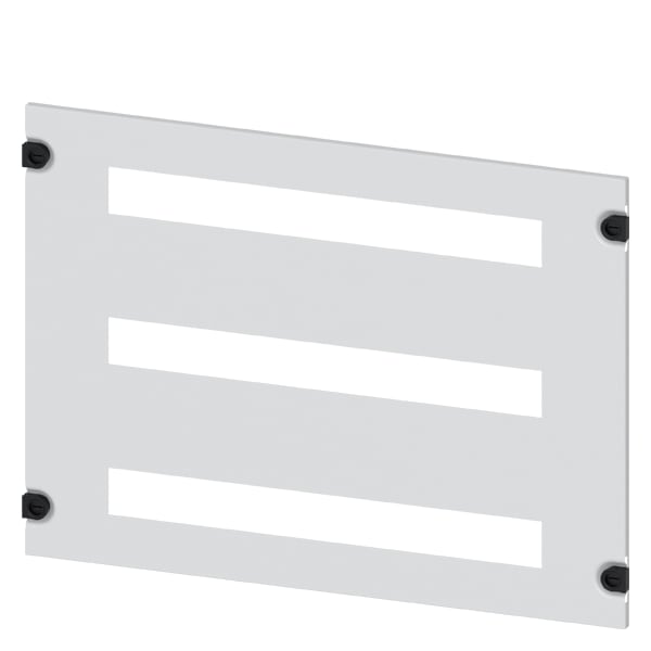 ALPHA 630 Universal, copertura di scomparto con aperture 3x 24UM, interdistanza tra le file 150 mm A=450mm La=600mm Quadri di distribuzione ALPHA - un sistema completo di quadri centralino e quadri di distribuzione a pavimento per linstallazione di apparecchi fino a 1250 A. I sistemi di quadri di distribuzione ALPHA sono testati secondo IEC 61439. Grazie alla struttura modulare e ad una piattaforma comune è possibile integrare i kit di montaggio specifici degli apparecchi in diverse varianti di quadri didistribuzione. Ciò facilita la pianificazione e il montaggio. Lequipaggiamento avviene in modo individuale e specifico per il progetto. Il software di configurazione SIMARIS configuration supporta lutente dalla pianificazione fino alla documentazione deiquadri di distribuzione dellenergia e dei quadri di distribuzione per linstallazione. I sistemi di quadri di distribuzione ALPHA sono fornibili in numerose esecuzioni e in molti colori speciali. Le porte sono a scelta in vetro o in acciaio. ALPHA - il concetto di sistema è importante.