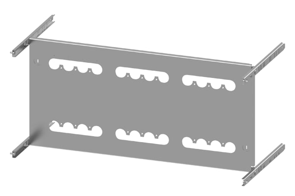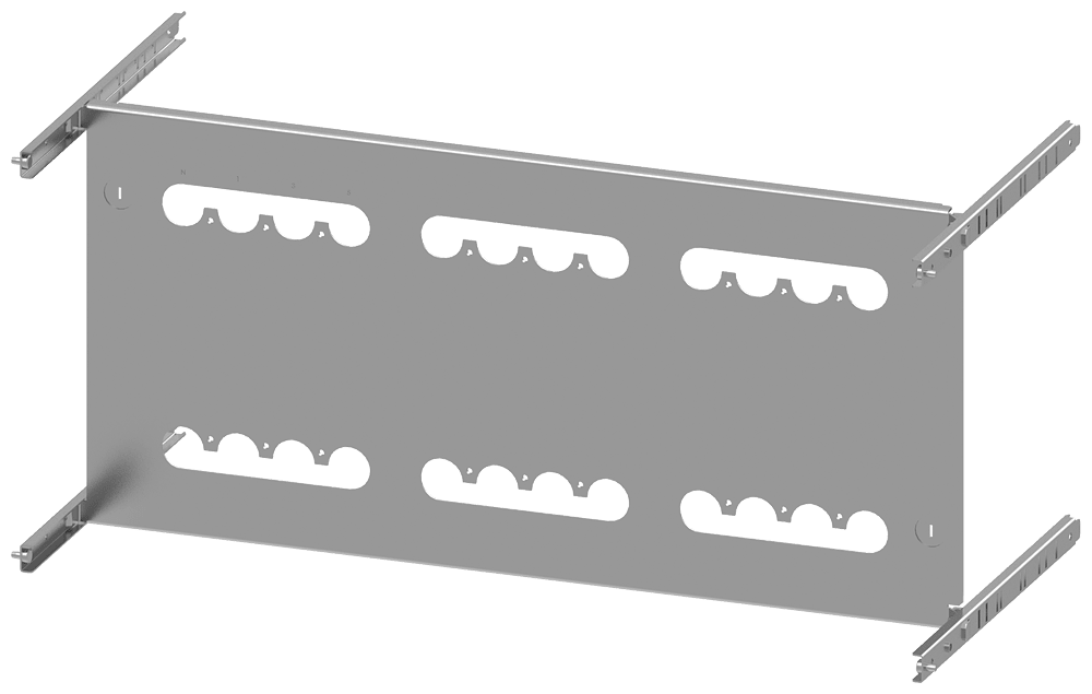 piastra di montaggio 3VA13 (400A), 3VA14 (630A), 3VA23 (400A), 3VA24 (630A), a 4 poli, installazione fissa, RCD: senza, A: 450mm, La: 800mm Il quadro di distribuzione dellenergia SIVACON S4 è un sistema economico di involucri e componenti SENTRON. I quadri di distribuzione dellenergia SIVACON di Siemens si contraddistinguono soprattutto per le seguenti caratteristiche: 1. Il software di configurazione SIMARIS configuration aumenta la sicurezza della pianificazione e fa risparmiare tempo sia nella preparazione dellofferta sia nella documentazione dellimpianto. 2. Durante lesercizio un sistema di ventilazione efficiente, appositamente studiato per i componenti, impedisce surriscaldamenti e concentrazioni di calore, riduce il derating e assicura così una disponibilità costante dellimpianto. 3. La forma della segregazione interna fino a 4b può essere realizzata in modo ottimale mediante componenti standard. 4. La struttura del quadro di distribuzione dellenergia SIVACON S4 semplifica il collegamento e linstallazione degli apparecchi. 5. Grazie a portapparecchi regolabili in profondità si hanno moltissime possibilità di installazione con unaridotta varietà di componenti, vedi ad. es. la scelta del meccanismo di comando e il tipo di montaggio degli apparecchi di manovra. 6. Grazie al concetto di produzione flessibile dei quadri di distribuzione SIVACON S4 certificato secondo ISO 9001 si possono realizzare soluzioni premontate in diverse varianti costruttive (secondo necessità con o senza elementi strutturali in rame) fornibili in tempo di consegna assai breve.