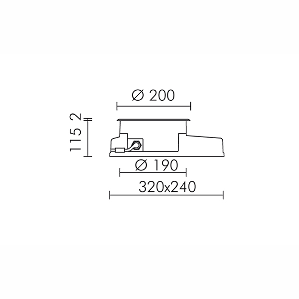 Cassaforma per COMPACT TONDA Ø200mm. Fornito con cassaforma in polipropilene predisposta per entrata dei cavi dai 4 lati che permette di: 1) eseguire un facile cablaggio; 2) alloggiare il connettore rapido IP68; 3) eseguire facilmente la rimozione dell’apparecchio per la manutenzione. Foro da incasso: 320x240x115mm.