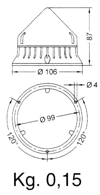 Luce lampeggiante con corpo e base in poliammide. Fornita senza lampada. Possibilità di installazione di una lampada a led.