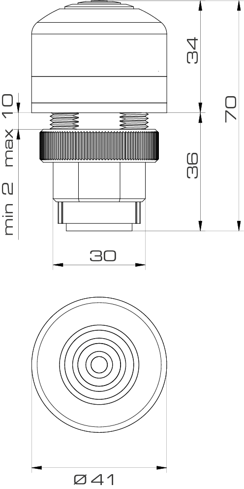 Buzzer piezoelettrico multifunzione progettato per l'installazione a pannello. Sviluppato con una tecnologia multilivello, consente due livelli di allerme (pre-allarme, allarme) selezionabili tramite contatti elettrici indipendenti. Policarbonato autoestinguente ad alta resistenza agli impatti, adatto all’utilizzo esterno grazie al grado di protezione IP65 garantito dalla guarnizione o-ring in EPDM presente sulla cupola e dalla guarnizione in poliuretano presente sulla base. Può essere installato a pannello tramite foro Ø 30mm e bloccato tramite l’anello di chiusura fornito.