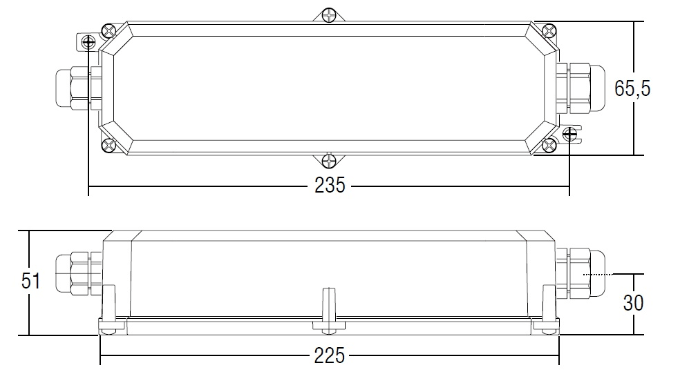 Alimentatore indipendente IP67, per uso esterno. Protetto in classe I controle scosse elettriche per contatti diretti e indiretti. Fornito di cavi su primario esecondario per il collegamento. Se il cavo di rete è danneggiato deve esseresostituito da personale autorizzato. Fissaggio dell’alimentatore tramite asole per viti.Protezioni: termica e cortocircuito; contro le extra-tensioni di rete; contro isovraccarichi. Tropicalizzazione disponibile su richiesta