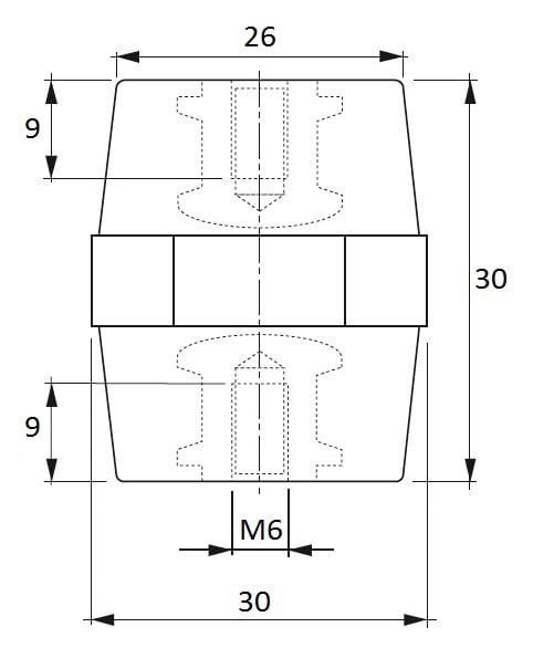 ISOLATORI E PORTASBARRE Altezza: 30 Tipo: Esagonale Inserto: M6