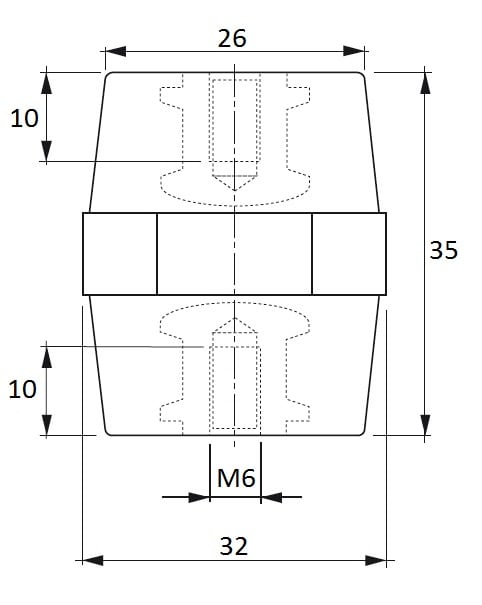 ISOLATORI E PORTASBARRE Altezza: 35 Tipo: Esagonale Inserto: M6