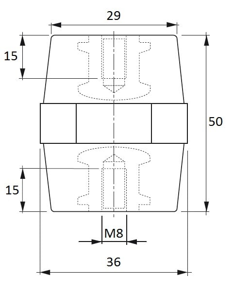 ISOLATORI E PORTASBARRE Altezza: 50 Tipo: Esagonale Inserto: M8